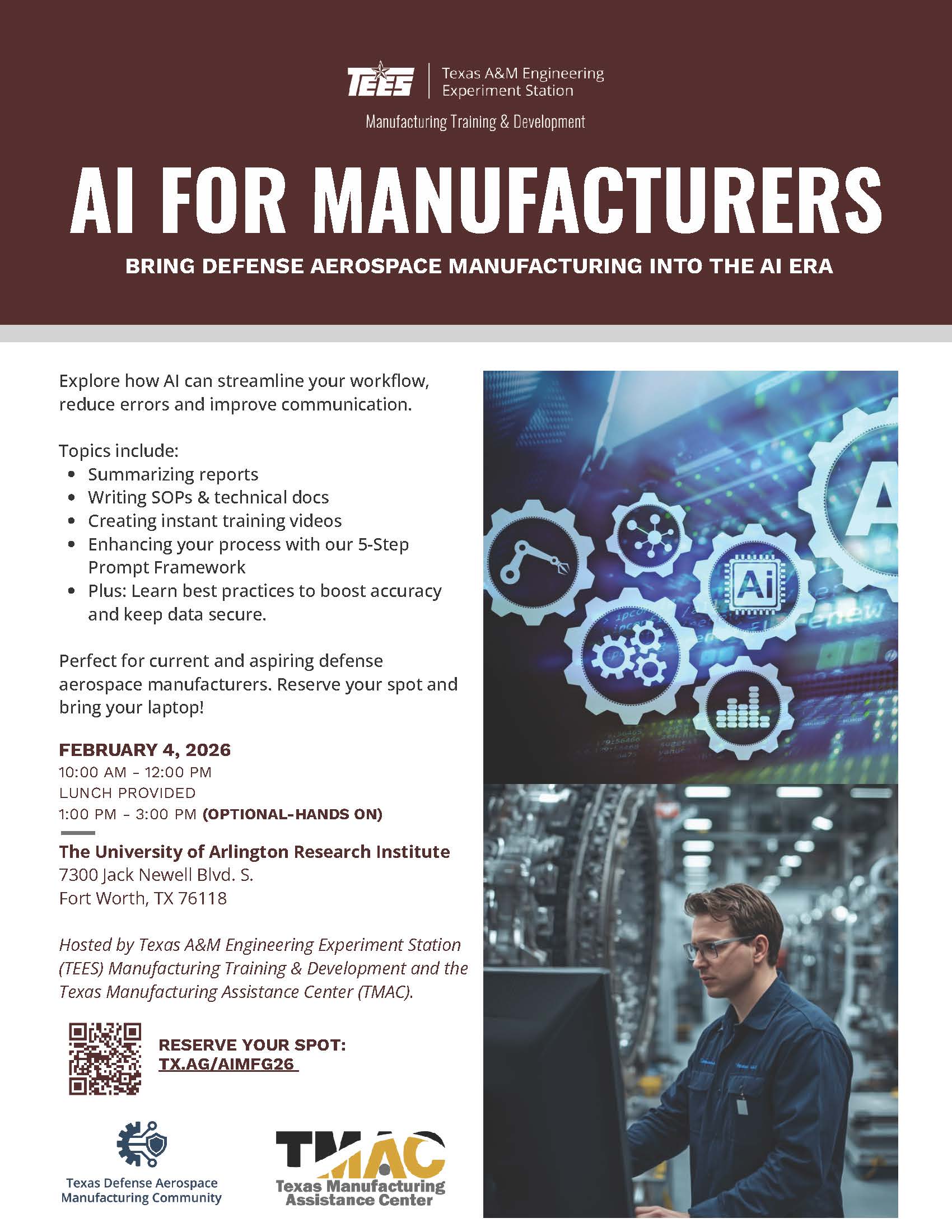 Home » Events » AI for Manufacturers: Bring Defense Aerospace Manufacturing into the AI Era