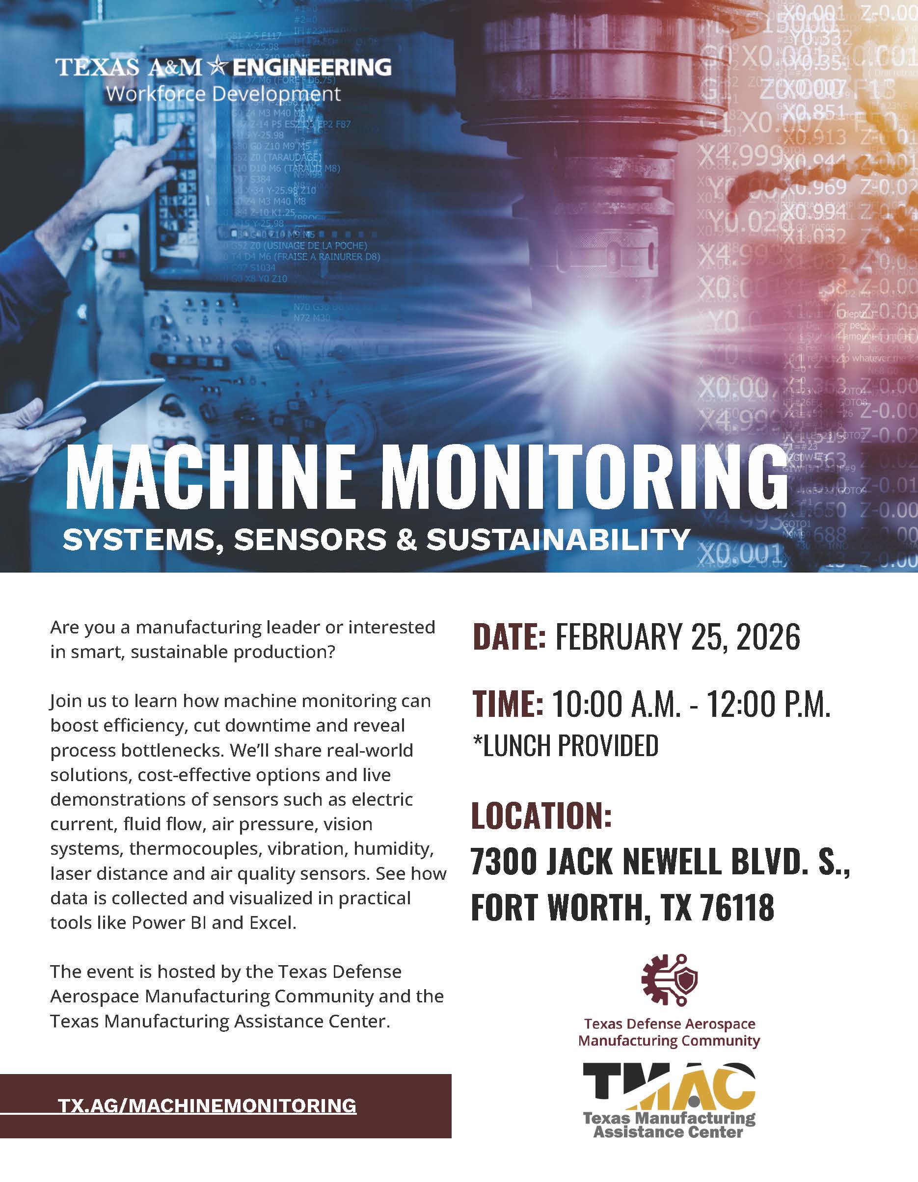 « All Events Machine Monitoring: Sensors, Systems, & Sustainability February 25 @ 10:00 am – 12:00 pm TMAC Metroplex UTARI 7300 Jack Newell Blvd. S. Fort Worth, TX 76118 United States + Google Map Register Add to calendar Google Calendar iCalendar Outlook 365 Outlook Live